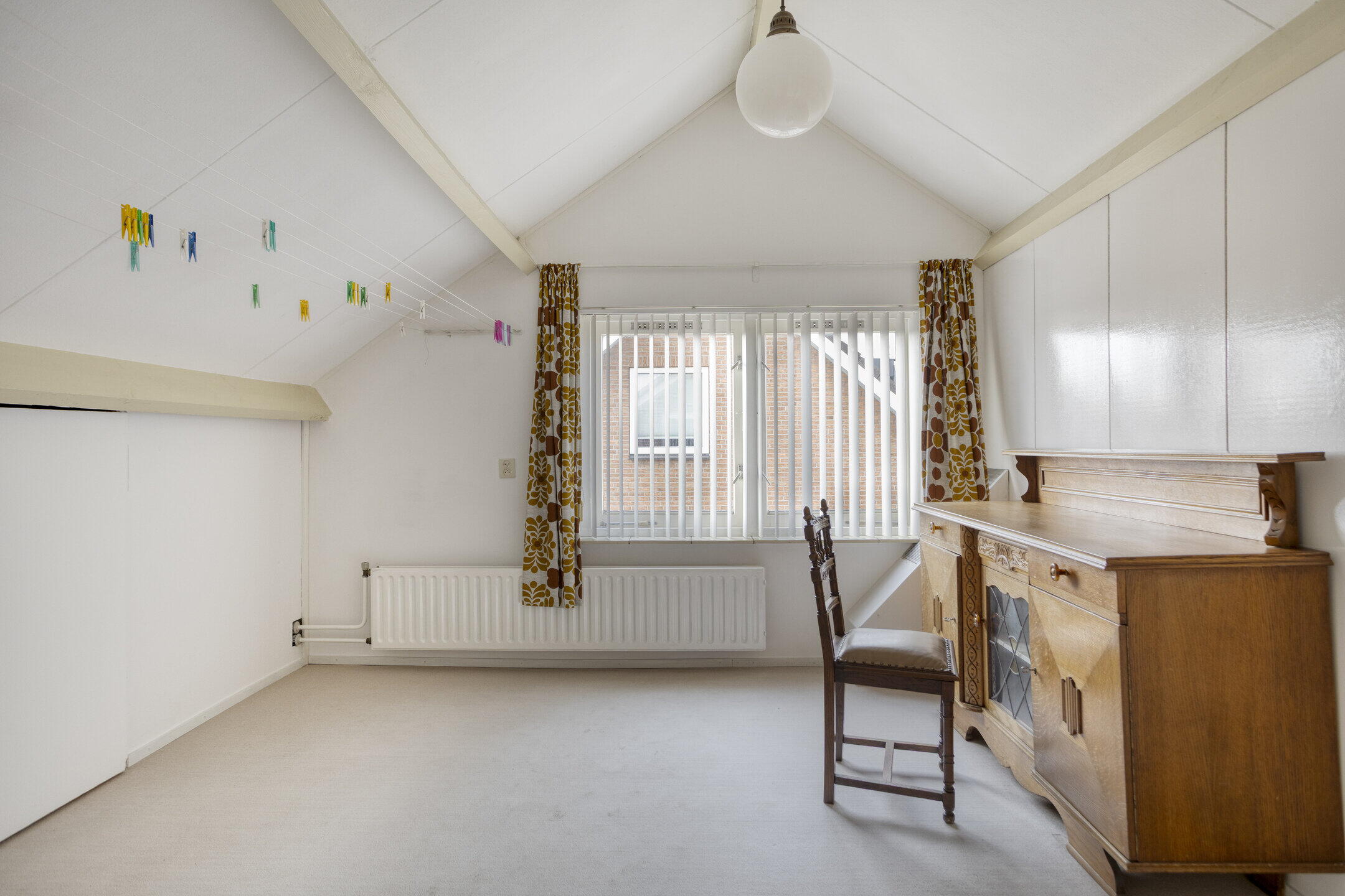Via een vaste trap bereikbare zolderverdieping met voorzolder met de opstelling van de cv-ketel (Remeha, 2015, eigendom) en de omvormer. Daarnaast een zolderkamer met radiator en bergruimte. Deze ruimte is verrassend veelzijdig en kan bijvoorbeeld uitstekend dienen als extra slaapkamer, hobbyruimte, werkplek of rustige thuiswerkplek. Via een deur is daarnaast een separate bergruimte bereikbaar.