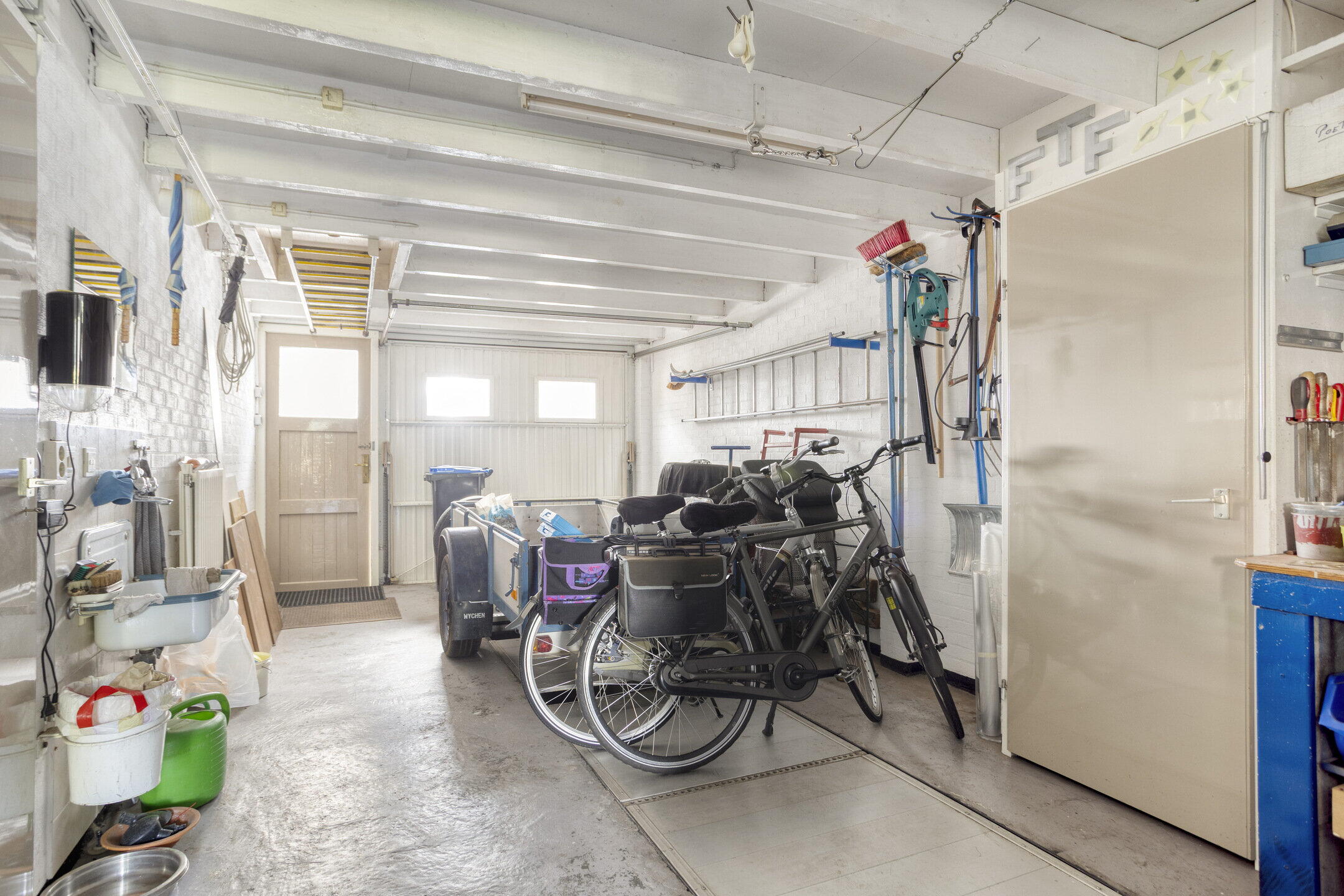 De garage is inpandig bereikbaar en voorzien van een uitstortgootsteen, elektra, kastruimte en een vliering. De ruimte biedt diverse gebruiksmogelijkheden, bijvoorbeeld voor hobbyruimte, opslag of werkruimte. Daarnaast beschikt de woning over een eigen oprit en carport, waardoor parkeren op eigen terrein eenvoudig is.