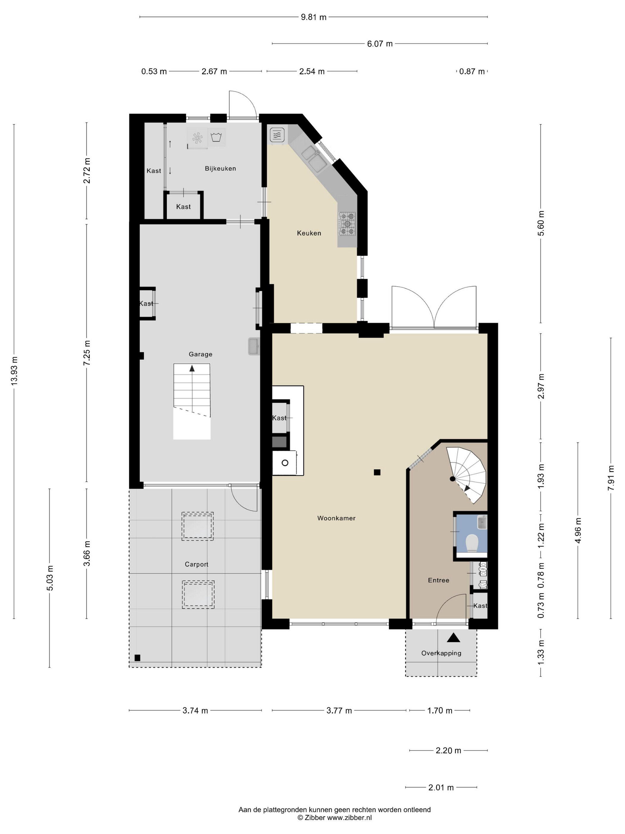 - Eigen oprit, carport en inpandig bereikbare garage;
